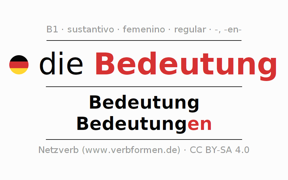 - Singular: die Bedeutung, der Bedeutung, der Bedeutung, die Bedeutung