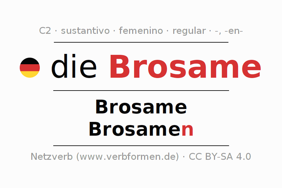 - Singular: die Brosame, der Brosame, der Brosame, die Brosame