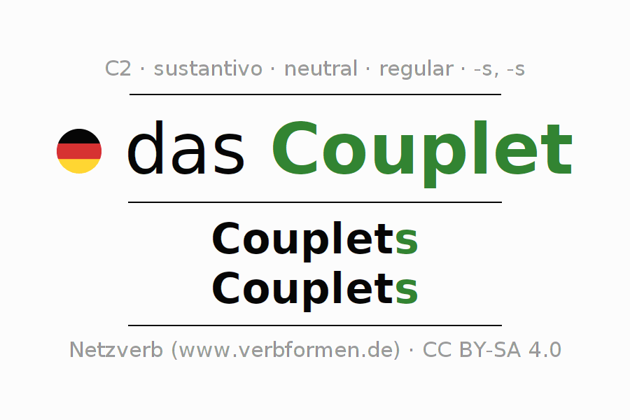 - Plural: die Couplets, der Couplets, den Couplets, die Couplets
