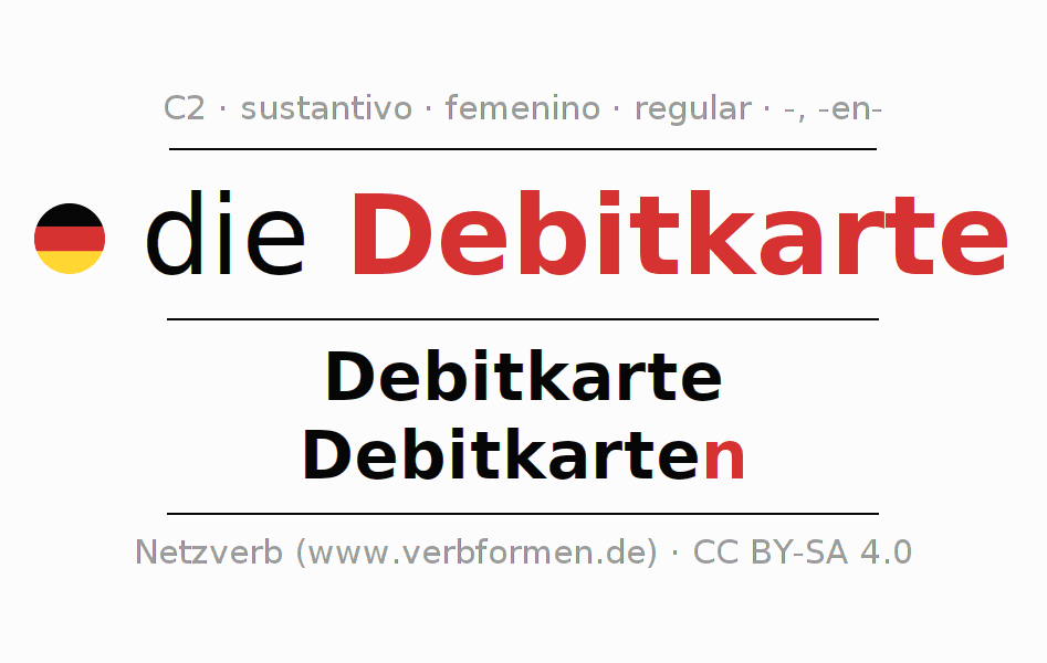 - Singular: die Debitkarte, der Debitkarte, der Debitkarte, die Debitkarte