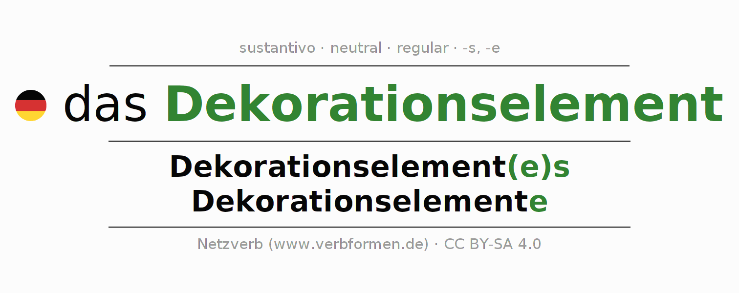 Resumen de todas las declinaciones del sustantivo Dekorationselement en todos los casos gramaticales.