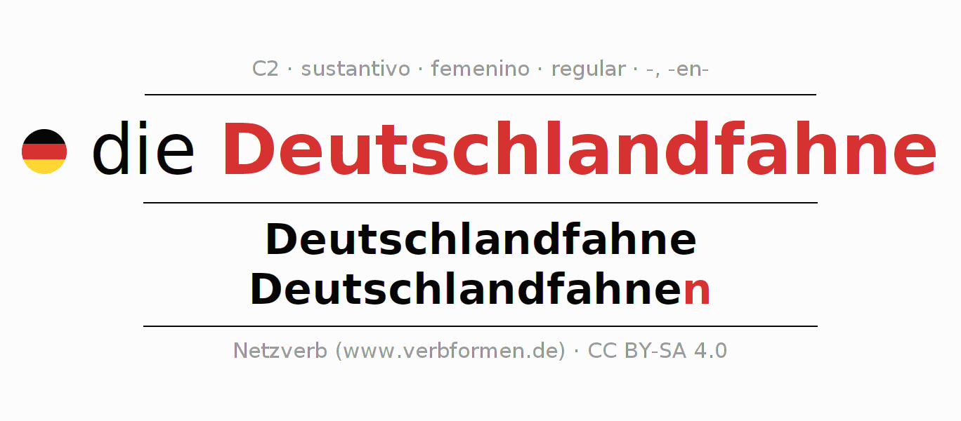 - Singular: die Deutschlandfahne, der Deutschlandfahne, der Deutschlandfahne, die Deutschlandfahne