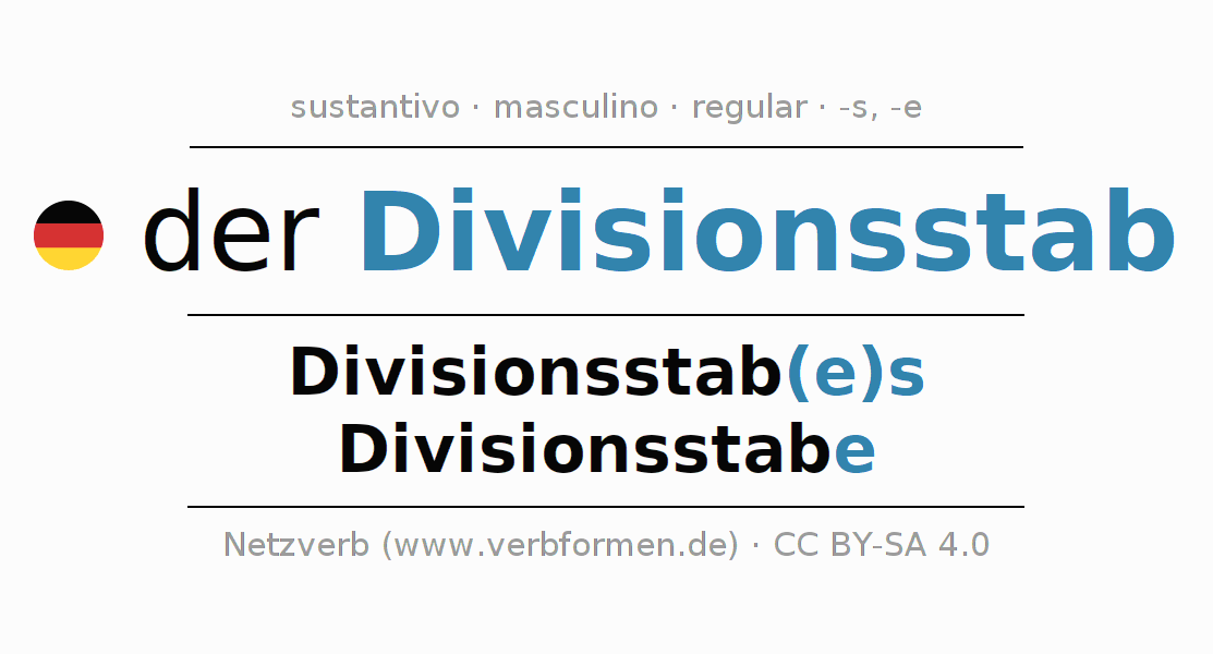 - Singular: der Divisionsstab, des Divisionsstab(e)s, dem Divisionsstab(e), den Divisionsstab