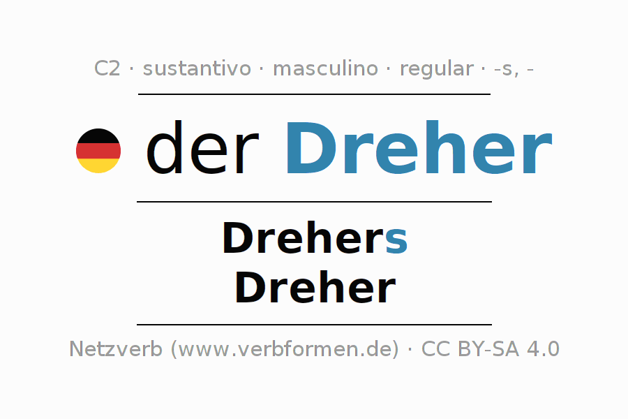 - Singular: der Dreher, des Drehers, dem Dreher, den Dreher