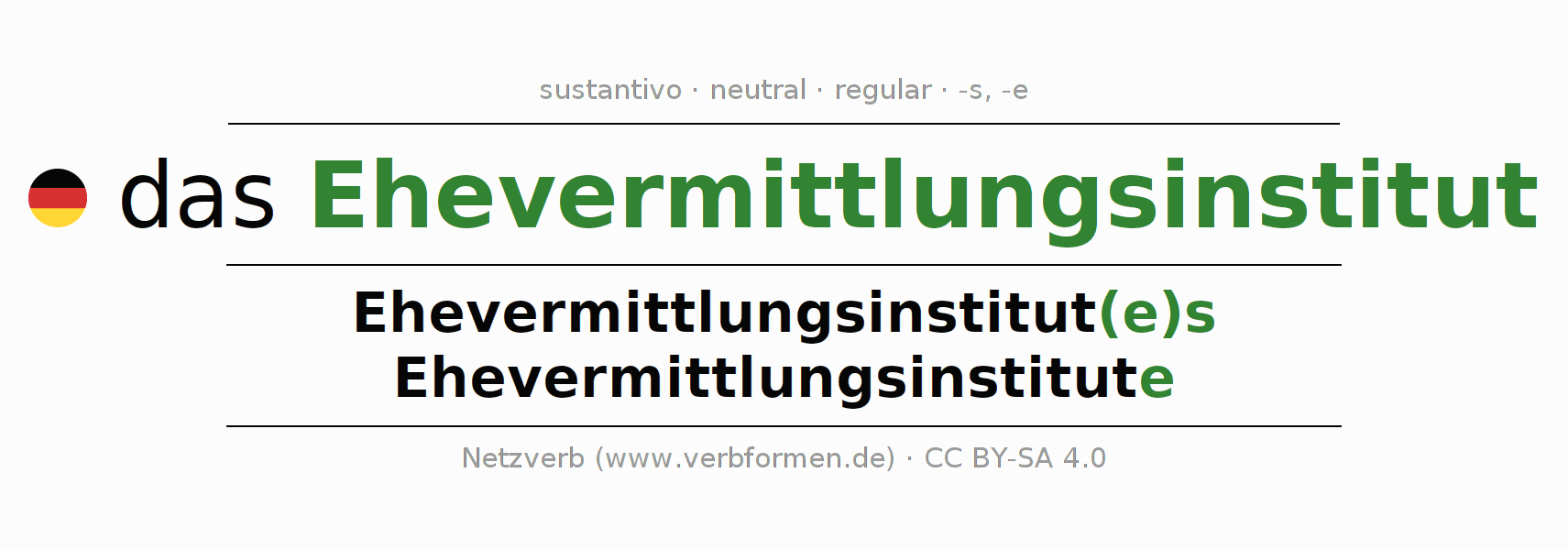 Resumen de todas las declinaciones del sustantivo Ehevermittlungsinstitut en todos los casos gramaticales.
