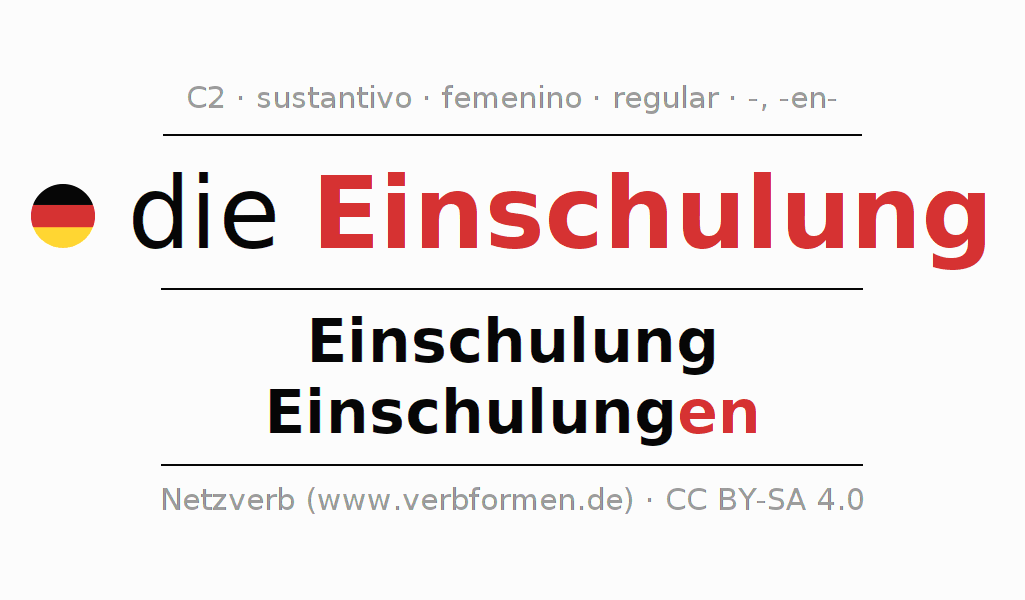 - Singular: die Einschulung, der Einschulung, der Einschulung, die Einschulung