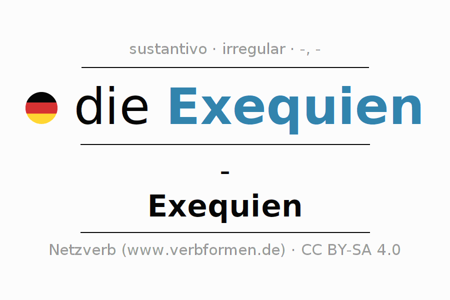 La declinación del sustantivo en forma de tabla con todas su formas: singular, plural y en los cuatro casos: nominativo (primer caso), genitivo (segundo caso), dativo (tercer caso) y acusativo (cuarto caso). Las construcciones gramaticales están representadas de forma clara en una tabla sinópica. La inflexión de los sustantivos es una ayuda durante tareas, exámenes, para cursos de alemán, la universidad, el estudio del alemán como lengua extranjera o como segundo idioma y para estudiantes adultos. La declinación correcta de las palabras es especialmente importante para los que aprenden el idioma alemán. Aquí encontraras más información acerca del tema Wiktionary Exequien y aquí también a través del Duden Exequien.