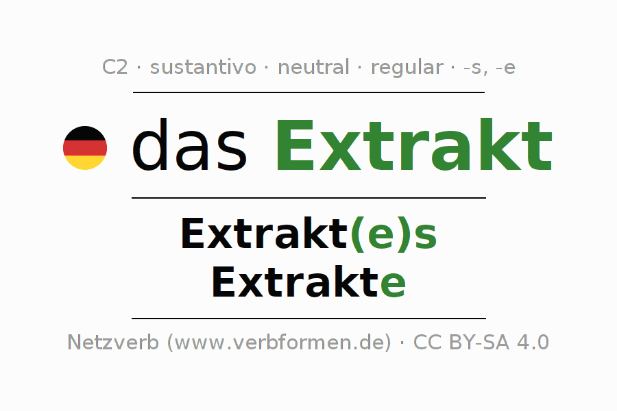 - Plural: die Extrakte, der Extrakte, den Extrakten, die Extrakte