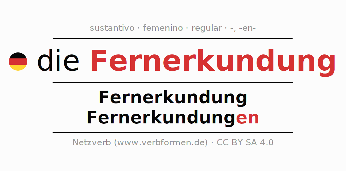 Resumen de todas las declinaciones del sustantivo Fernerkundung en todos los casos gramaticales.