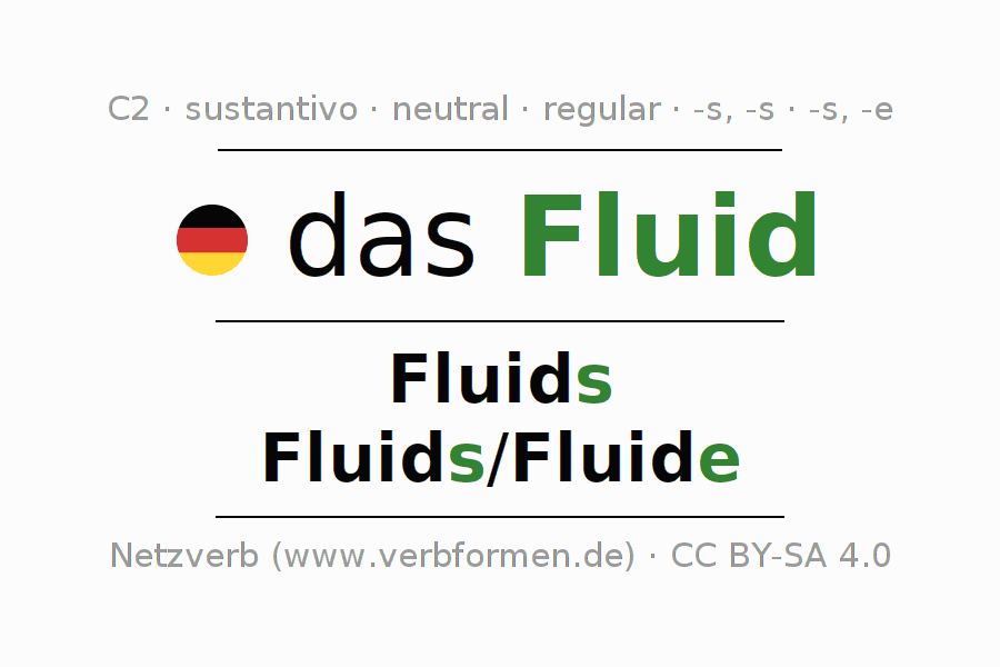 - Singular: das Fluid, des Fluids, dem Fluid, das Fluid