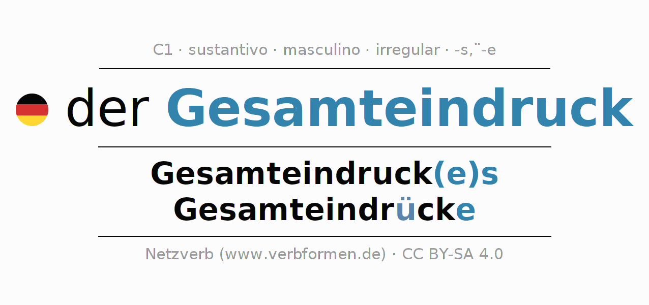 Resumen de todas las declinaciones del sustantivo Gesamteindruck en todos los casos gramaticales.