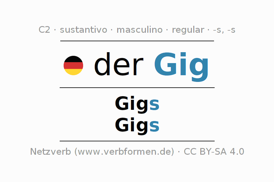 - Singular: der Gig, des Gigs, dem Gig, den Gig