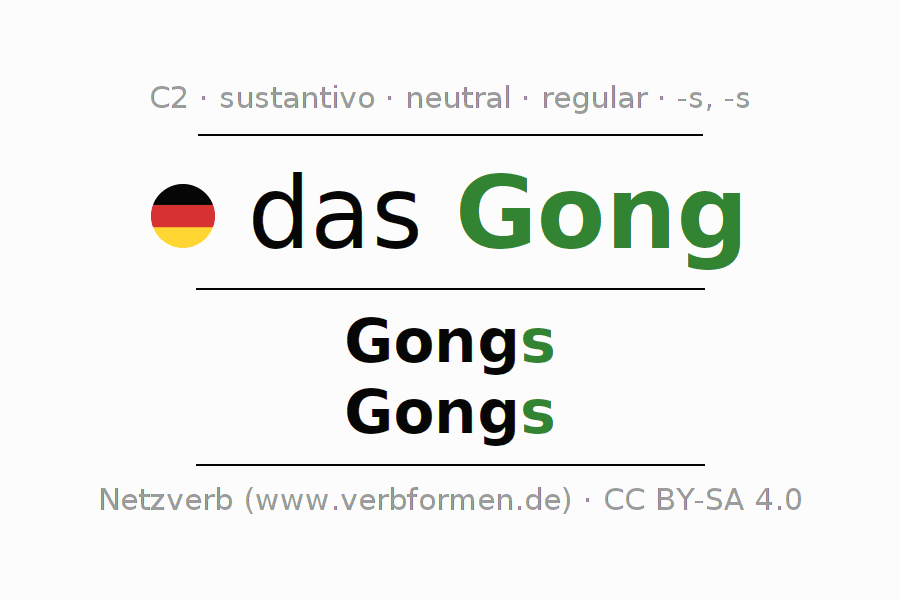 - Singular: das Gong, des Gongs, dem Gong, das Gong