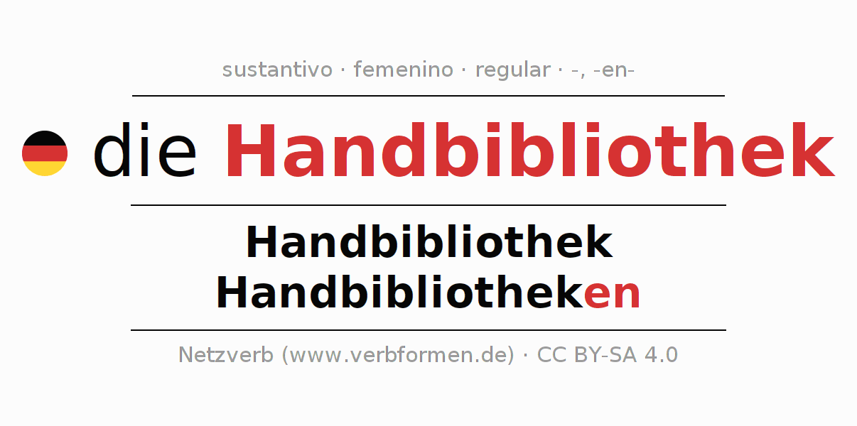 Resumen de todas las declinaciones del sustantivo Handbibliothek en todos los casos gramaticales.
