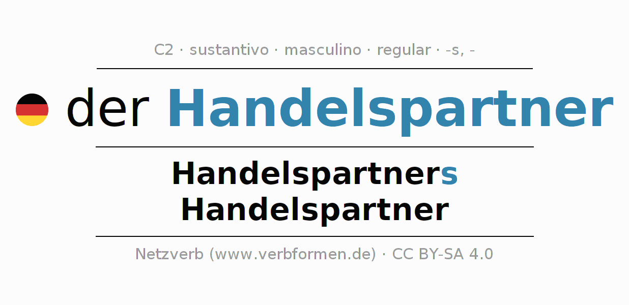 - Singular: der Handelspartner, des Handelspartners, dem Handelspartner, den Handelspartner