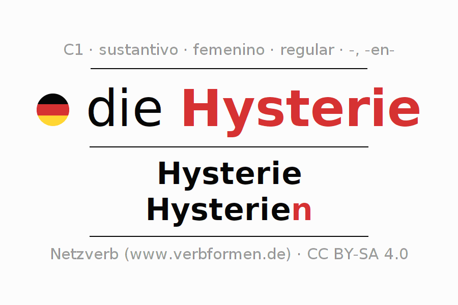 - Singular: die Hysterie, der Hysterie, der Hysterie, die Hysterie