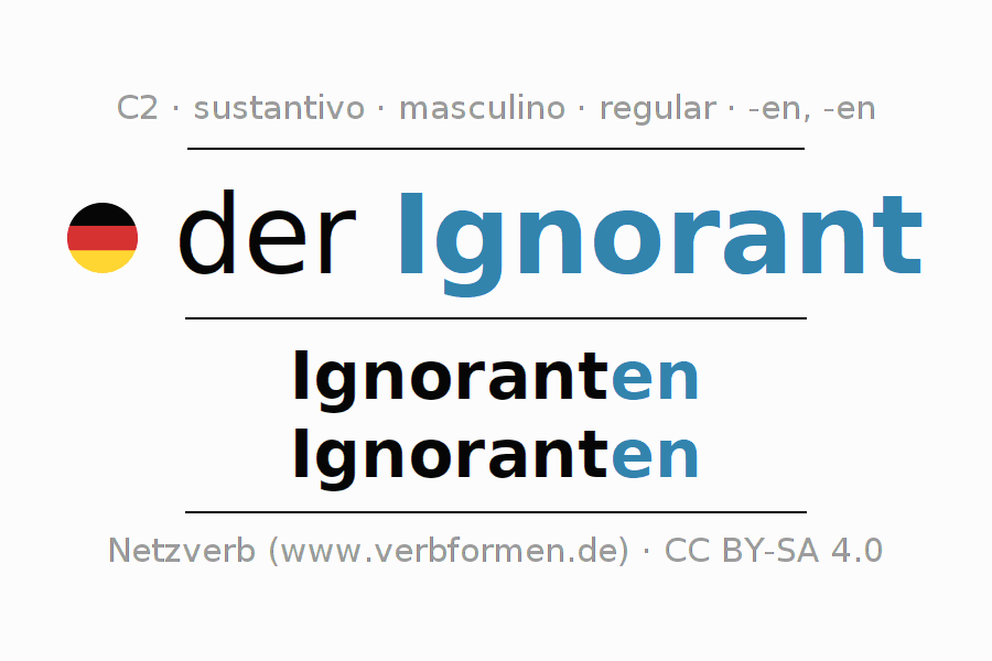 - Singular: der Ignorant, des Ignoranten, dem Ignoranten, den Ignoranten