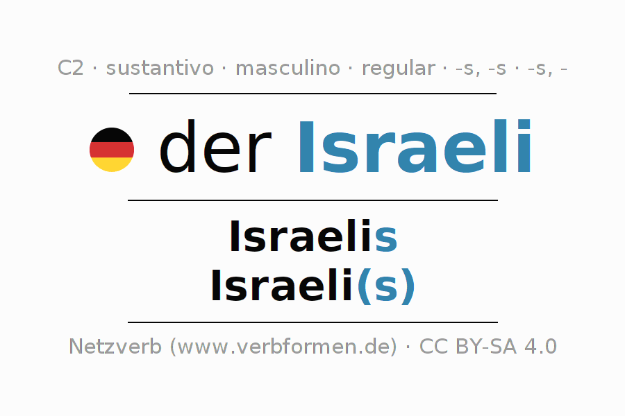 - Plural: die Israeli(s), der Israeli(s), den Israeli(s), die Israeli(s)