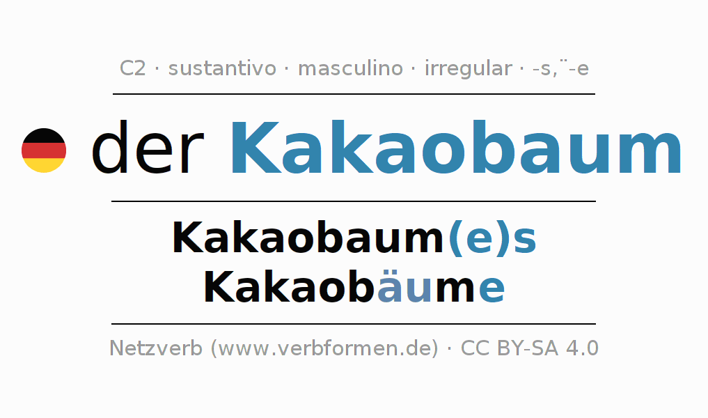 Nom. | der Kakaobaum | die Kakaobäume |