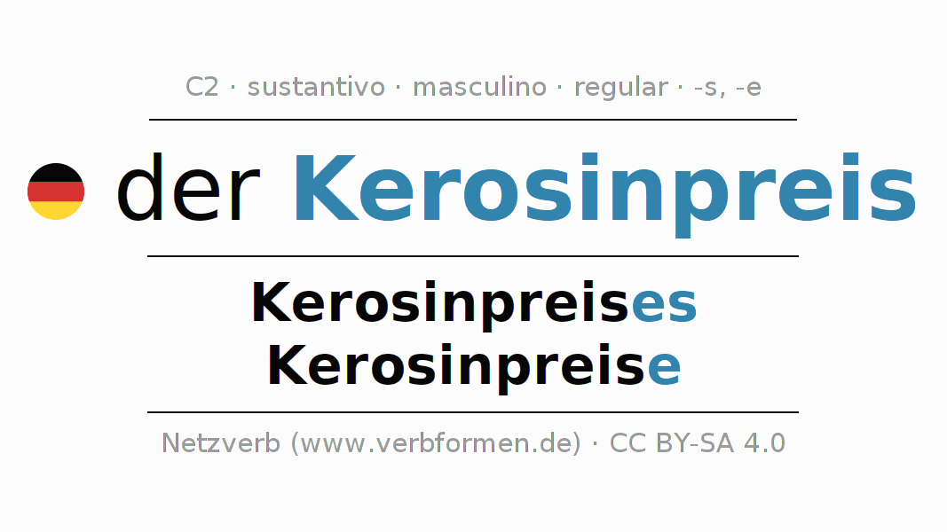 - Singular: der Kerosinpreis, des Kerosinpreises, dem Kerosinpreis(e), den Kerosinpreis