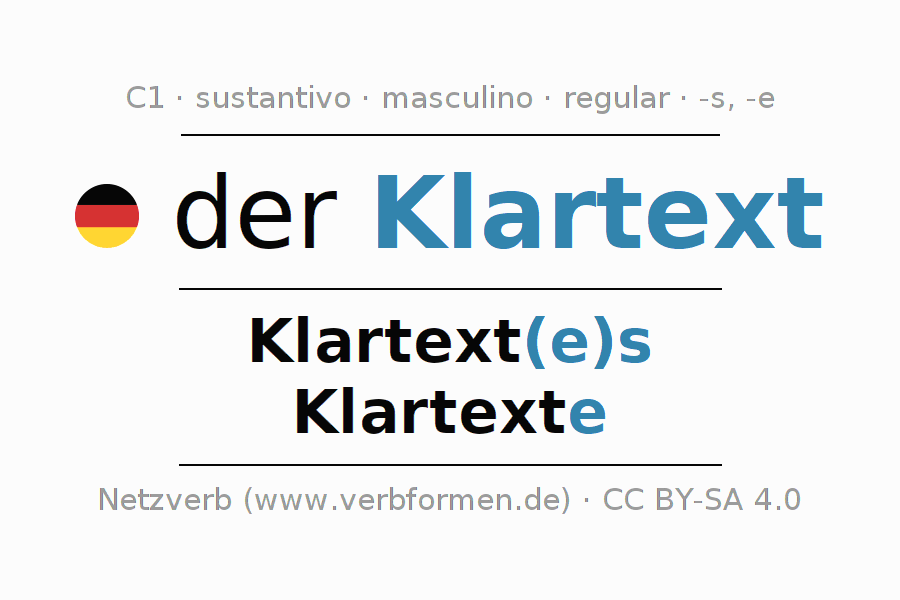 - Plural: die Klartexte, der Klartexte, den Klartexten, die Klartexte
