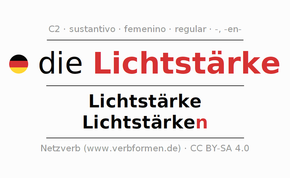 - Singular: die Lichtstärke, der Lichtstärke, der Lichtstärke, die Lichtstärke