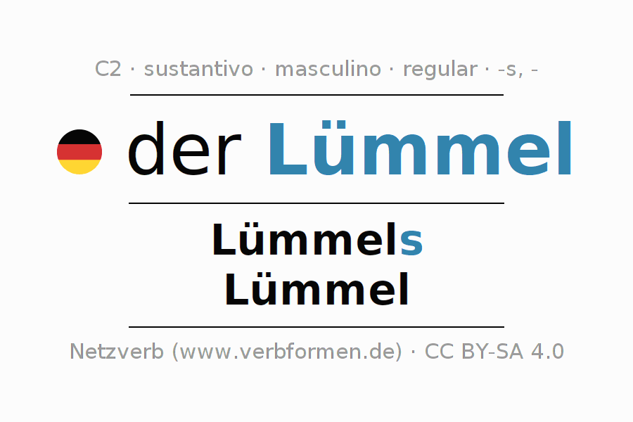 La declinación de Lümmel en singular y plural, en todos los casos gramaticales.