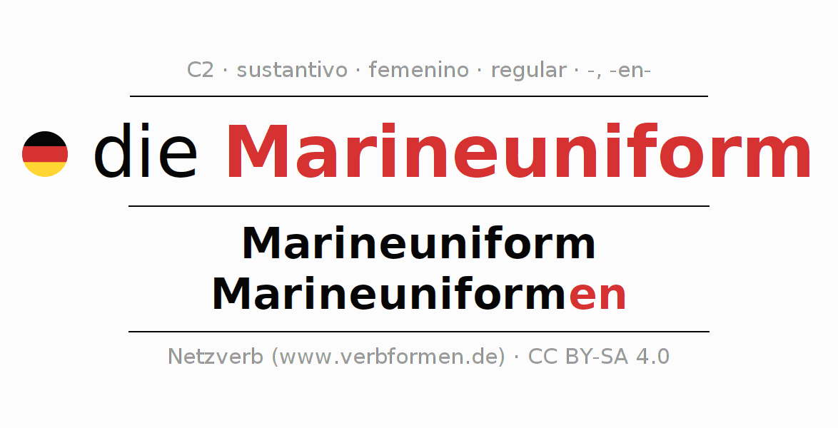 - Plural: die Marineuniformen, der Marineuniformen, den Marineuniformen, die Marineuniformen