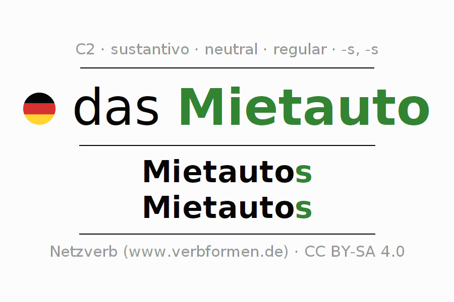 - Singular: das Mietauto, des Mietautos, dem Mietauto, das Mietauto