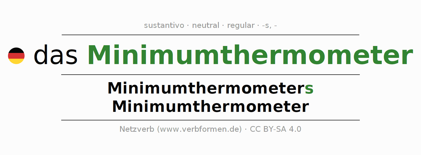 - Singular: das Minimumthermometer, des Minimumthermometers, dem Minimumthermometer, das Minimumthermometer