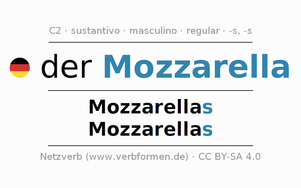 - Singular: der Mozzarella, des Mozzarellas, dem Mozzarella, den Mozzarella