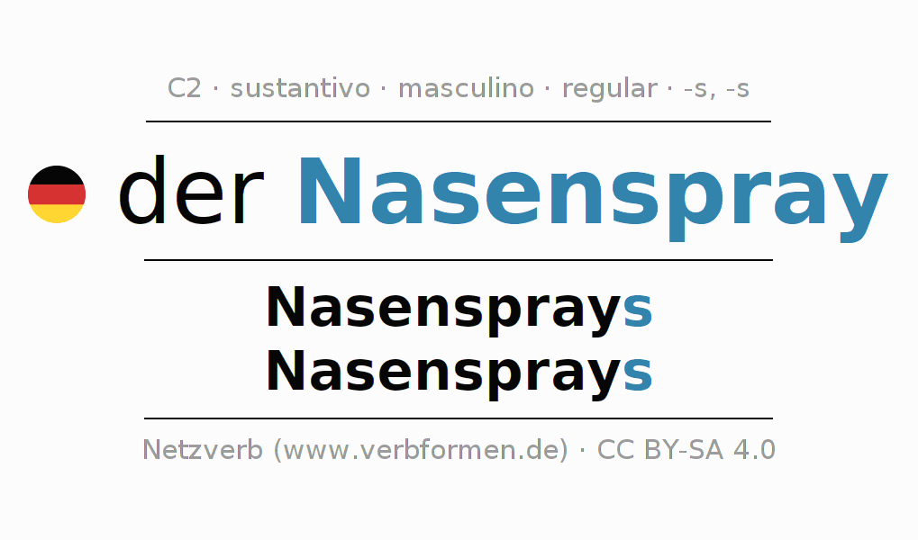 - Plural: die Nasensprays, der Nasensprays, den Nasensprays, die Nasensprays