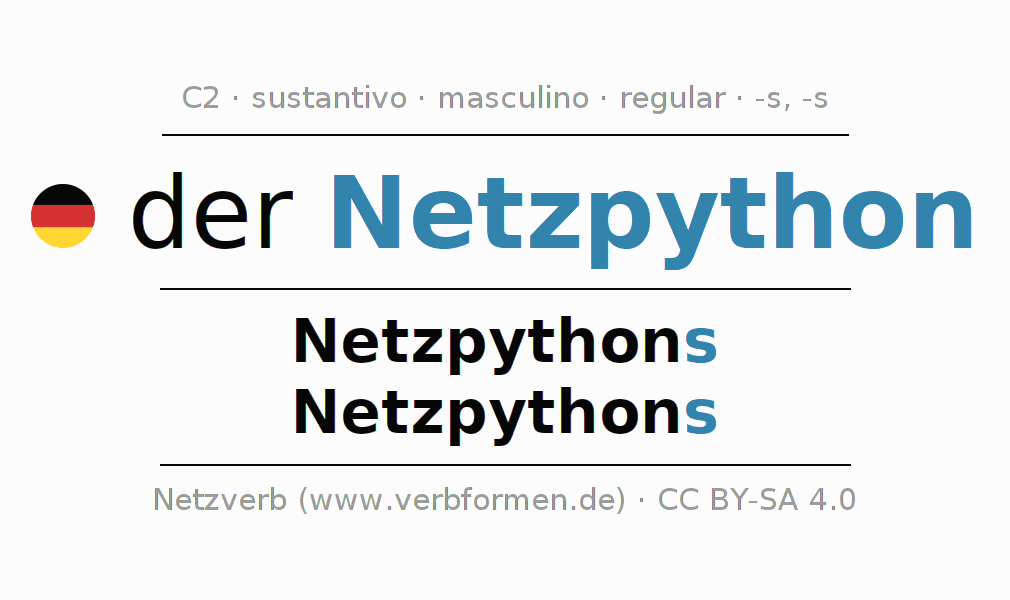 - Singular: der Netzpython, des Netzpythons, dem Netzpython, den Netzpython