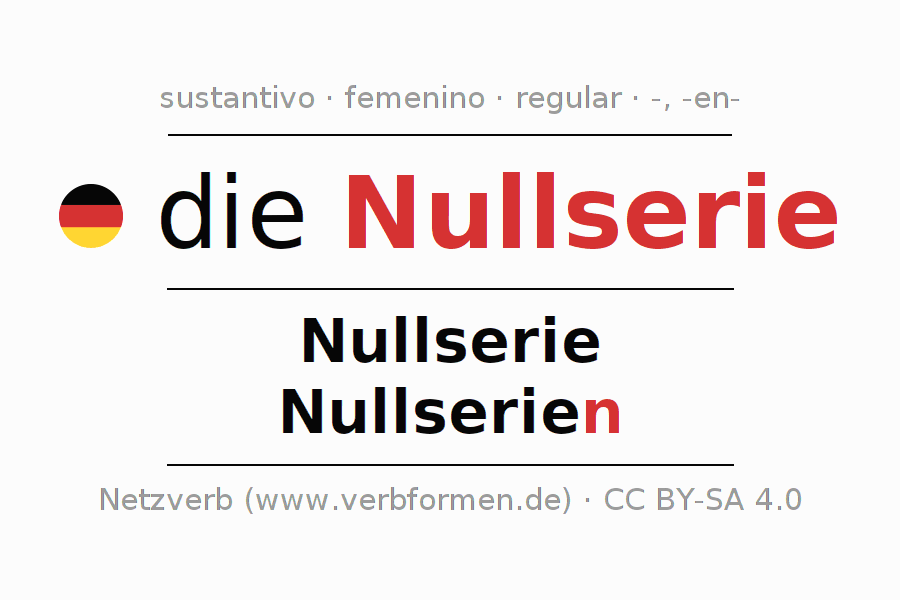 - Singular: die Nullserie, der Nullserie, der Nullserie, die Nullserie