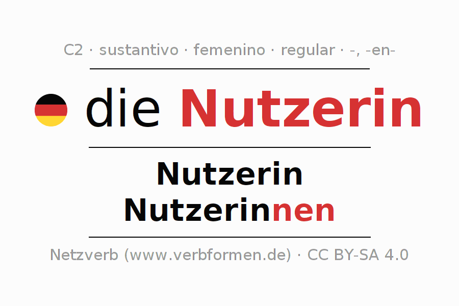 - Plural: die Nutzerinnen, der Nutzerinnen, den Nutzerinnen, die Nutzerinnen