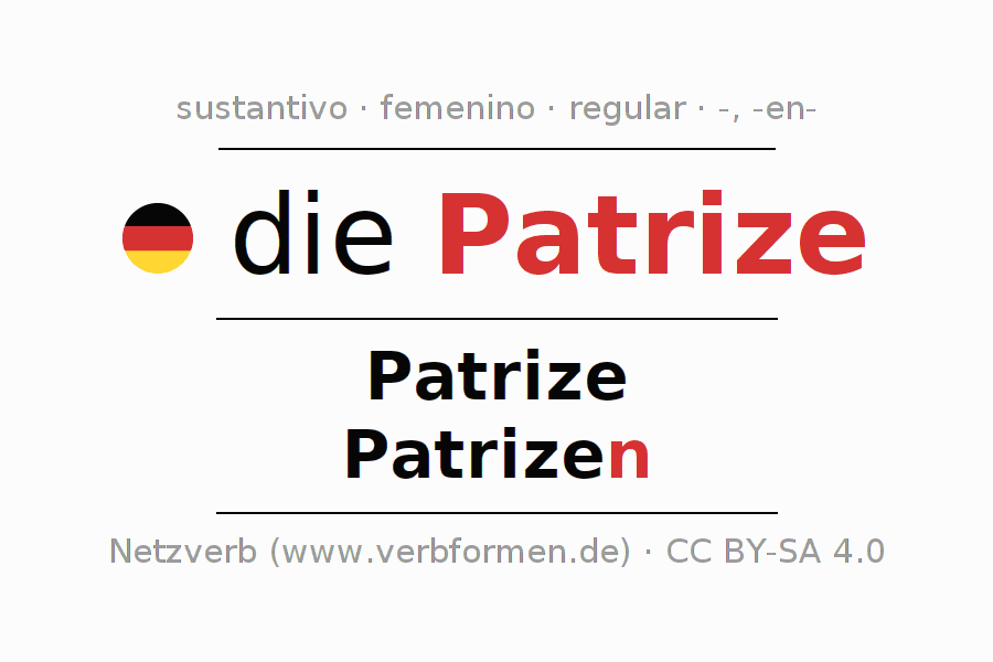 - Singular: die Patrize, der Patrize, der Patrize, die Patrize