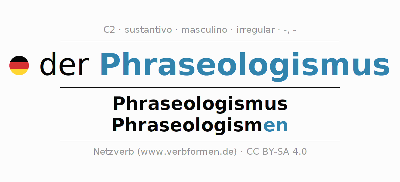 Resumen de todas las declinaciones del sustantivo Phraseologismus en todos los casos gramaticales.