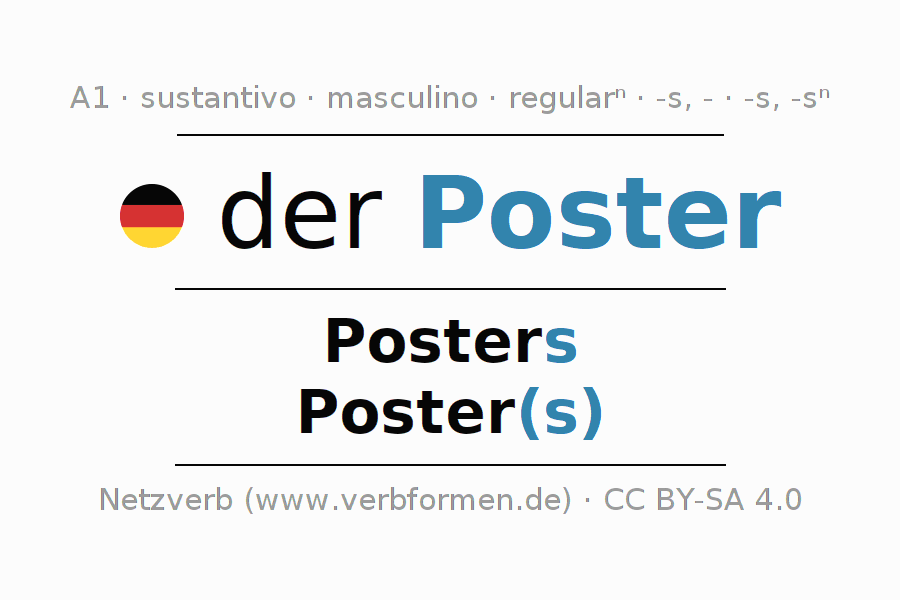 - Singular: der Poster, des Posters, dem Poster, den Poster