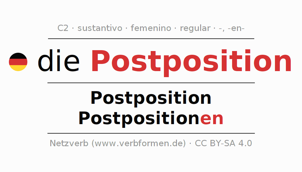 - Singular: die Postposition, der Postposition, der Postposition, die Postposition