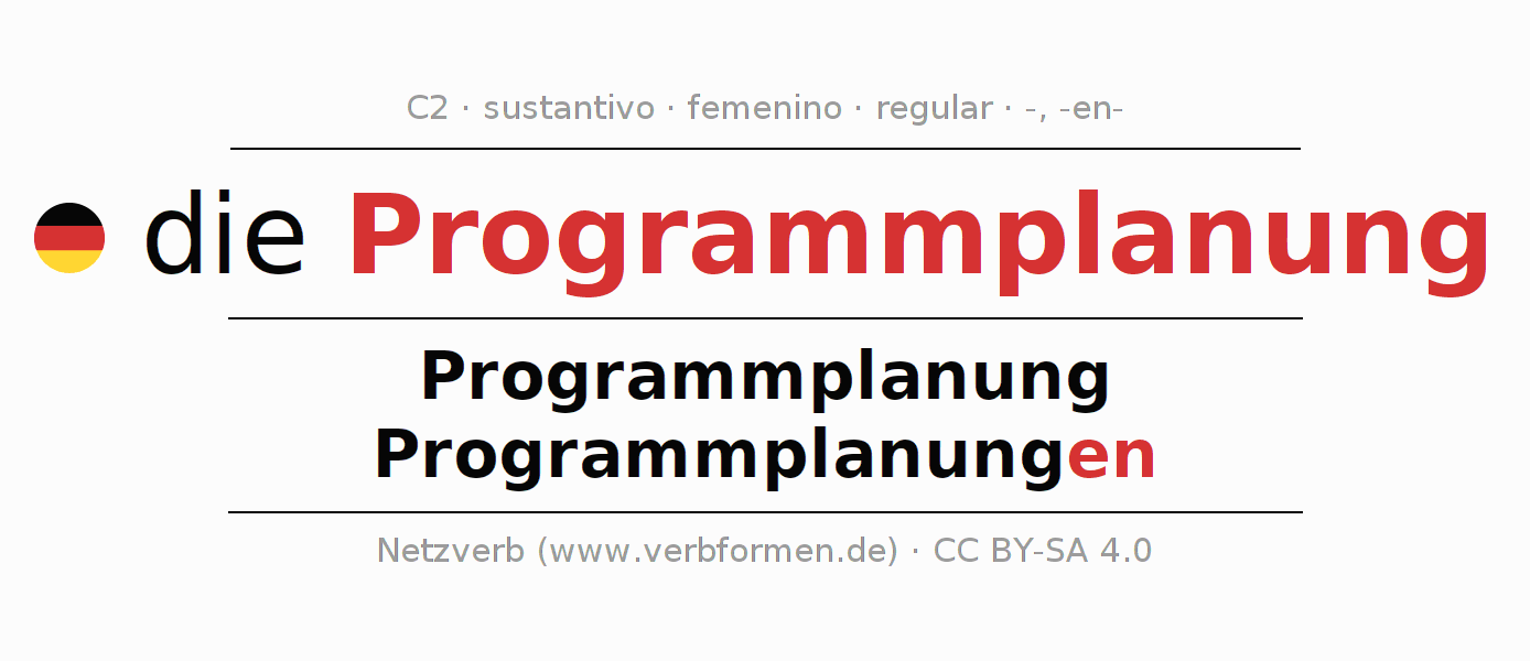 Resumen de todas las declinaciones del sustantivo Programmplanung en todos los casos gramaticales.