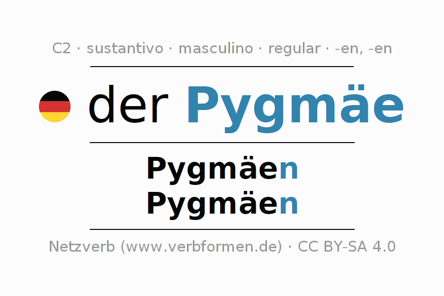- Singular: der Pygmäe, des Pygmäen, dem Pygmäen, den Pygmäen