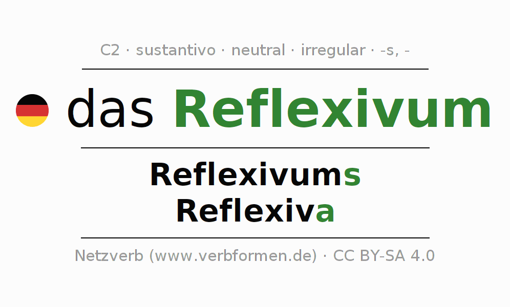 - Singular: das Reflexivum, des Reflexivums, dem Reflexivum, das Reflexivum