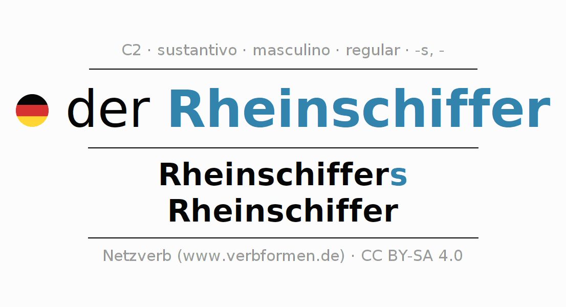 Resumen de todas las declinaciones del sustantivo Rheinschiffer en todos los casos gramaticales.