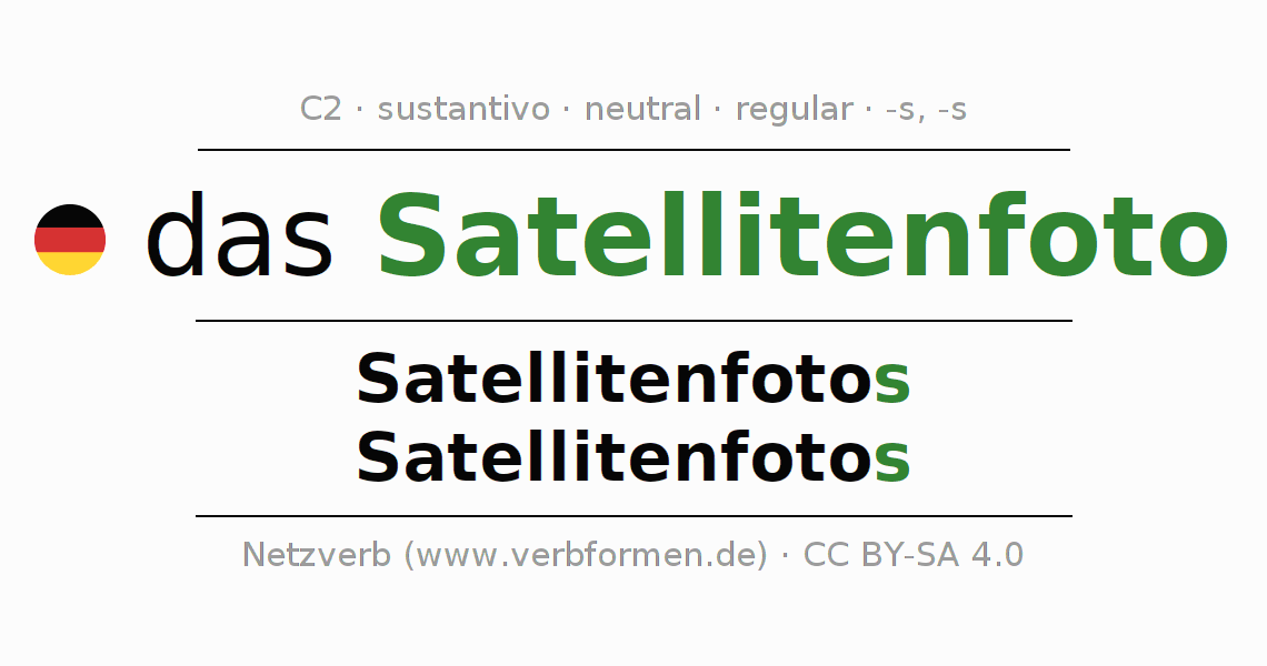 - Plural: die Satellitenfotos, der Satellitenfotos, den Satellitenfotos, die Satellitenfotos