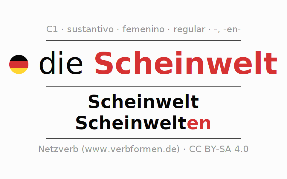 - Singular: die Scheinwelt, der Scheinwelt, der Scheinwelt, die Scheinwelt