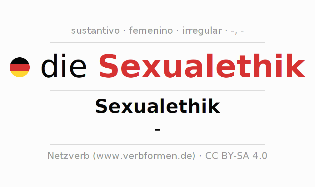 La declinación del sustantivoSexualethik (ética sexual) se encuentra en genitivoSexualethik del singular y en el nominativo- del plural. El sustantivo Sexualethik se declina con las terminaciones -/-. No permite construcciones en plural. El género gramatical de Sexualethik es femenino y por eso se requiere el artículo definido ‘die’. Aquí puedes declinar no solamente Sexualethik sino también todos los sustantivos alemanes . Comentarios ☆