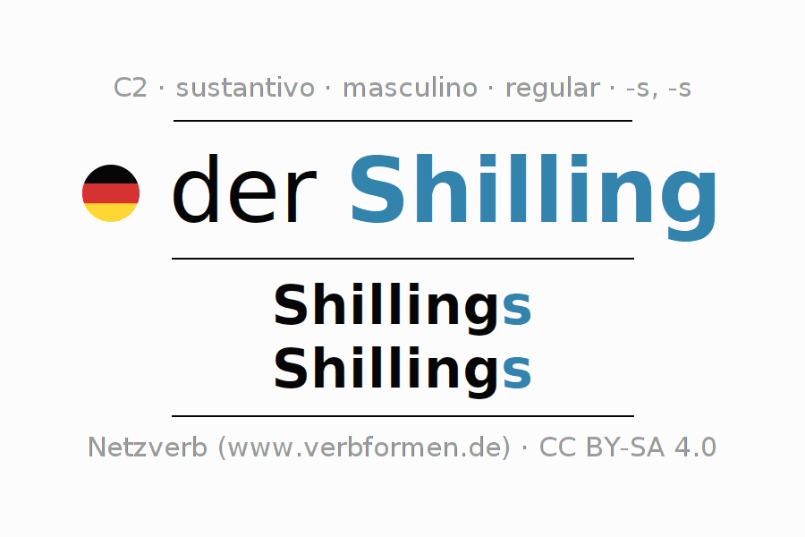 - Singular: der Shilling, des Shillings, dem Shilling, den Shilling