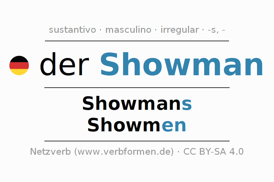 - Singular: der Showman, des Showmans, dem Showman, den Showman