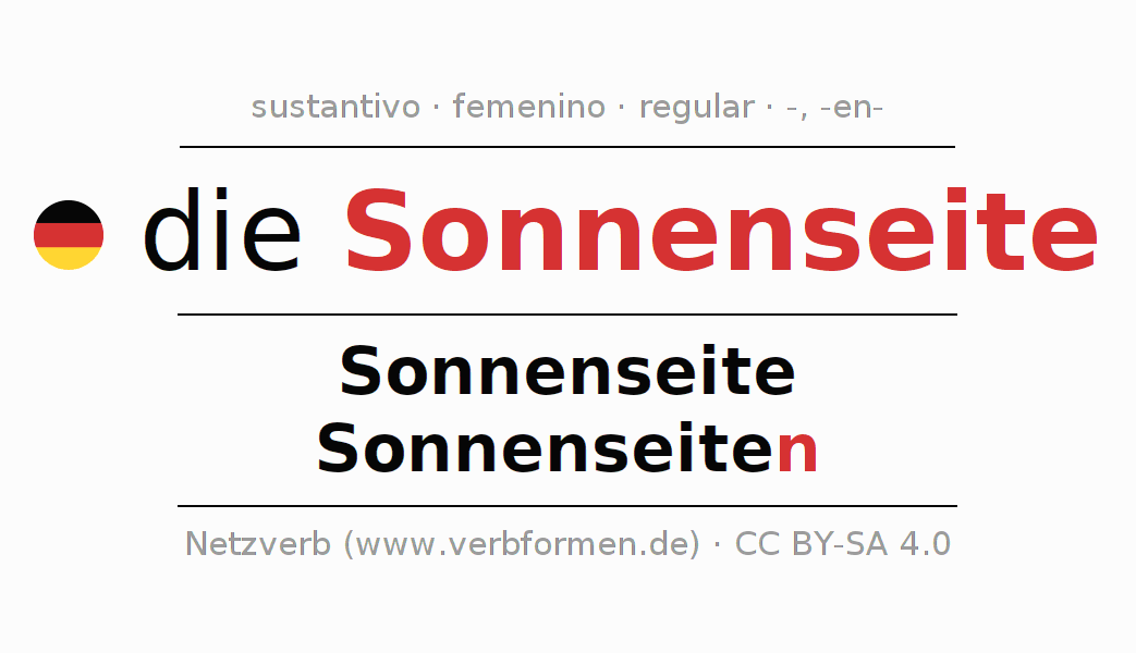- Singular: die Sonnenseite, der Sonnenseite, der Sonnenseite, die Sonnenseite