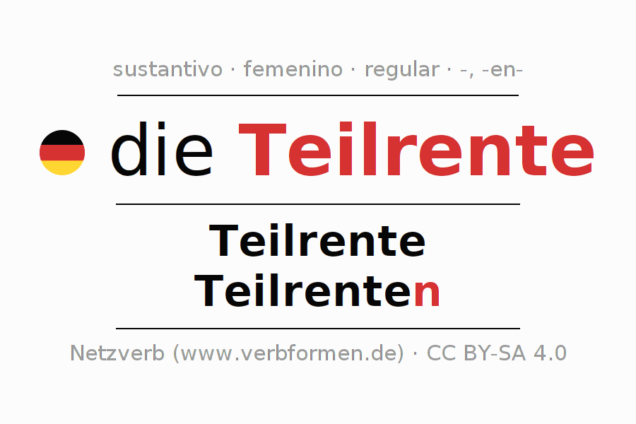 - Singular: die Teilrente, der Teilrente, der Teilrente, die Teilrente